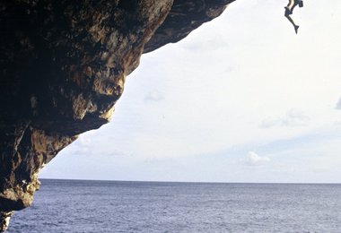 Highball Bouldering mit dem edelstem und weichstem Crashpad, speziell bei wildem Seegang. So unbekümmert kann man weder mit Seil noch beim Bouldern sein.