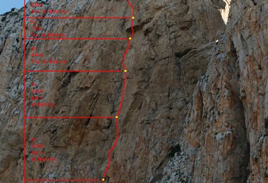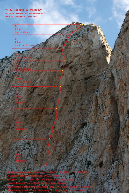 "La lingua pura", 6.SL, 200m, 7c max, 6c obl., Monte Monaco Nordwand