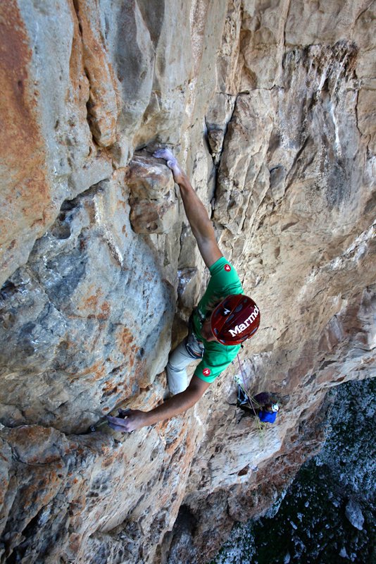 Erst in der Dunkelheit, im Schein der Stirnlampe, erreichen wir unser Heim am Campingplatz. Ein paar Tage später durfte ich meine vielleicht schönste Mehrseillängenroute rotpunkt klettern. „La lingua pura“ (7c, 6c obl., 200m) besticht durch perfekte Felsqualität, teilweise an mächtigen Sintern und kompakten Verschneidungen. Wie immer, wenn die Stimmung passt, vergehen die Tage wie im Flug.