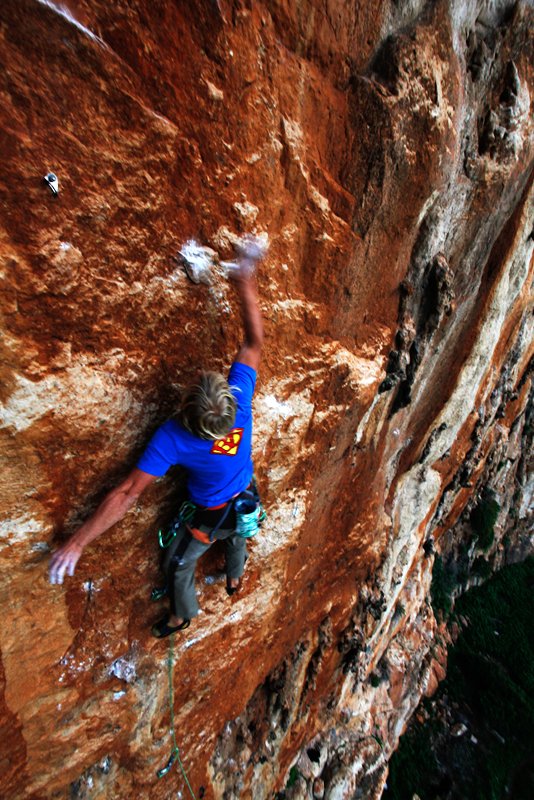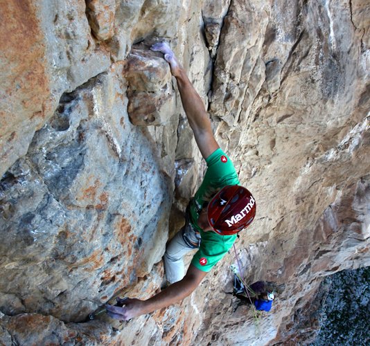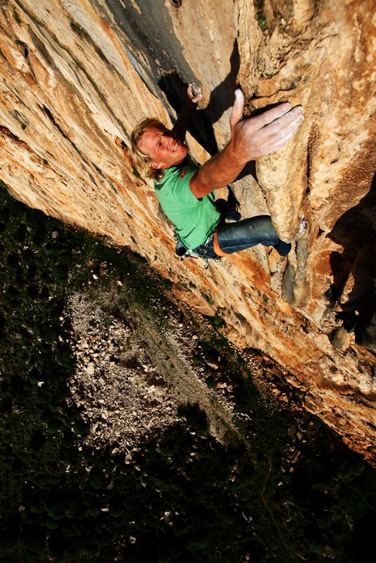 Bereits im Frühjahr hatte ich es mir nicht nehmen lassen, die 35 Meter lange Sinterspur „Tears of Freedom“ 7a+ zu erschließen. Bei rotem Sonnenuntergangslicht von unten eingerichtet ist sie für mich die schönste 7a+ der Welt.