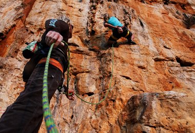Man braucht eine ganze Weile an Zeit, um die Eindrücke der mächtigen, mit unglaublichen Sinterfahnen in verschiedensten Farben überzogenen Wand aus perfektem Kalkgestein zu verarbeiten. Bei Sonnenuntergang beginnt die gesamte Wand in orangeroten Tönen zu leuchten und klettert man dann an einer der bis zu 50 Meter langen Sinterrouten, kann die Stimmung nicht mehr beeindruckender sein.