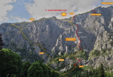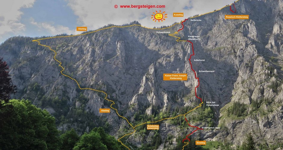 Anmerkung: Der Abstieg vom Kaiser Franz Josef Klettersteig in der Seemauer ist steil, stellenweise versichert und bei Regen gefährlich!