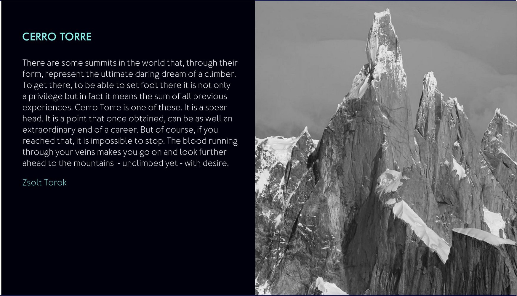 Torok Zolt war konsequent und ihm gelangen viele bekannte Routen, wie Eiger Nordwand, Walker Pfeiler und Grande Jorasses. Danach war er in Südamerika unterwegs, dann wagte er den Schritt zu den Himalaya Touren. Mittlerweile war Torok Zoltan schon über 10 Mal im Himalaya, aber auch in Patagonien gelang ihm eine neue Route am Cerro dell Sur und die Besteigung des Cerro Torre.