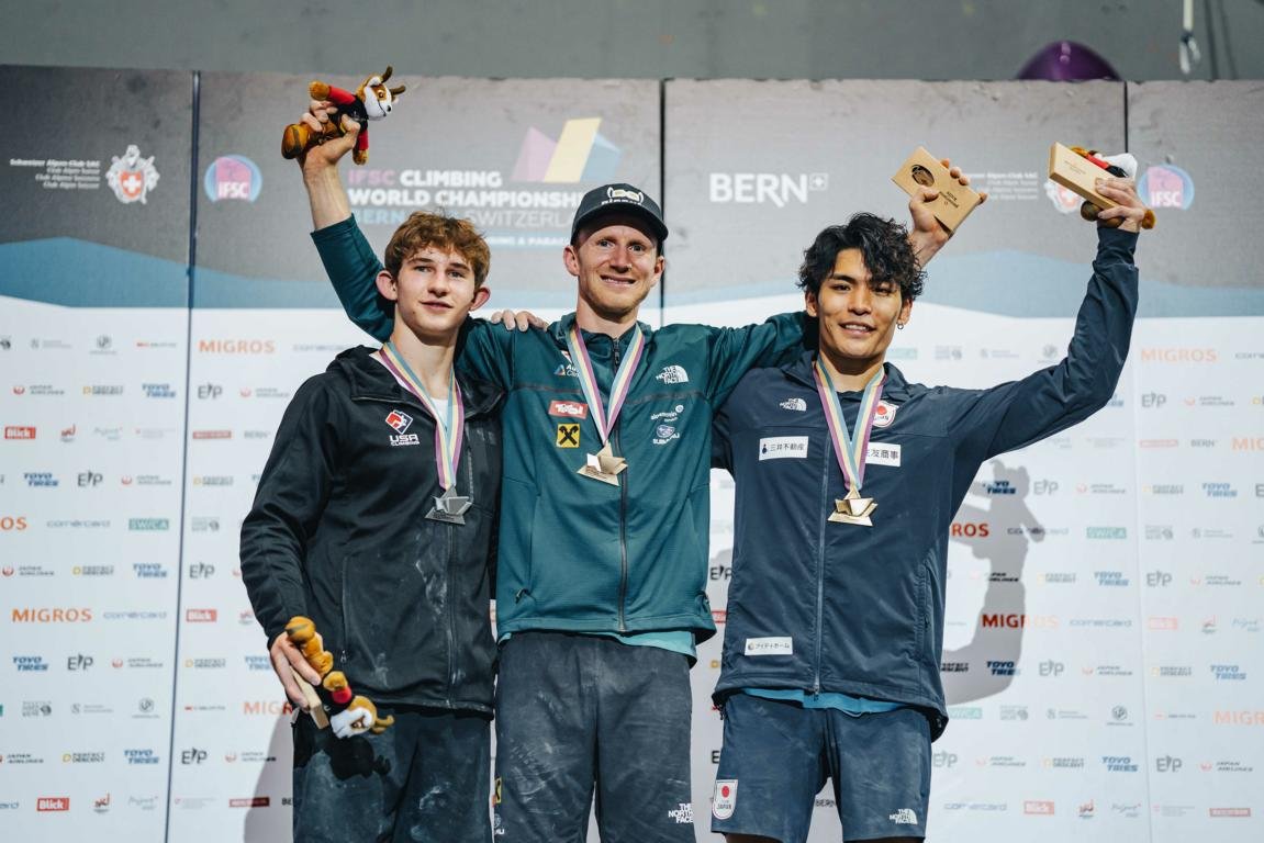 Krönender Abschluss für Österreich bei der Kletter-Weltmeisterschaft in Bern! Jakob Schubert sorgte nach seiner Goldmedaille im Lead nun im olympischen Format für den nächsten Coup, es war die sechste WM-Goldmedaille für den 32-Jährigen. Den Grundstein für Platz eins und das Olympia-Ticket legte Schubert bereits im Bouldern. Nach beeindruckenden vier Tops und 99,6 Punkten lag der Heeressportler zur Halbzeit auf Platz zwei – nur 0,1 Punkte hinter Leader Tomoa Narasaki (JPN) – und brachte sich in eine super Ausgangsposition. „Es ist unglaublich, wie es mir bei der WM aufgegangen ist und ich jetzt noch einen zweiten Titel mitnehmen kann. Ich habe gewusst, bei einer guten Boulder-Runde habe ich Chancen. Ich bin extrem gut rein gestartet und habe gemerkt, dass den ersten Boulder neben mir nur Tomoa gemacht hat. Das hat mir einen unglaublichen Boost gegeben. Dann war ich drinnen und habe voll abgeliefert. Die Ausgangssituation war super, aber mental herausfordernd. Normalerweise kann ich von hinten angreifen, jetzt musste ich meine Position verteidigen“, erklärte Schubert.