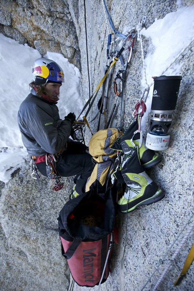 Ganze 35 Stunden dauerte das Unterfangen. Infolge der ungewöhnlich eisigen Temperaturen konnte das Team jedoch den Zeitplan nicht mehr einhalten. Die Risse im Fels, die sie zum Aufstieg benötigten, waren ab Wandmitte komplett vereist und mussten mühsam mit einem Pickel bearbeitet werden. Das kostete Zeit. Am Vormittag des zweiten Tages trafen Glowacz und Gratton gemeinsam die Entscheidung, die Tour abzubrechen. Eine weitere Nacht in der Wand ohne Biwakausrüstung hätte unkontrollierbare Folgen gehabt.