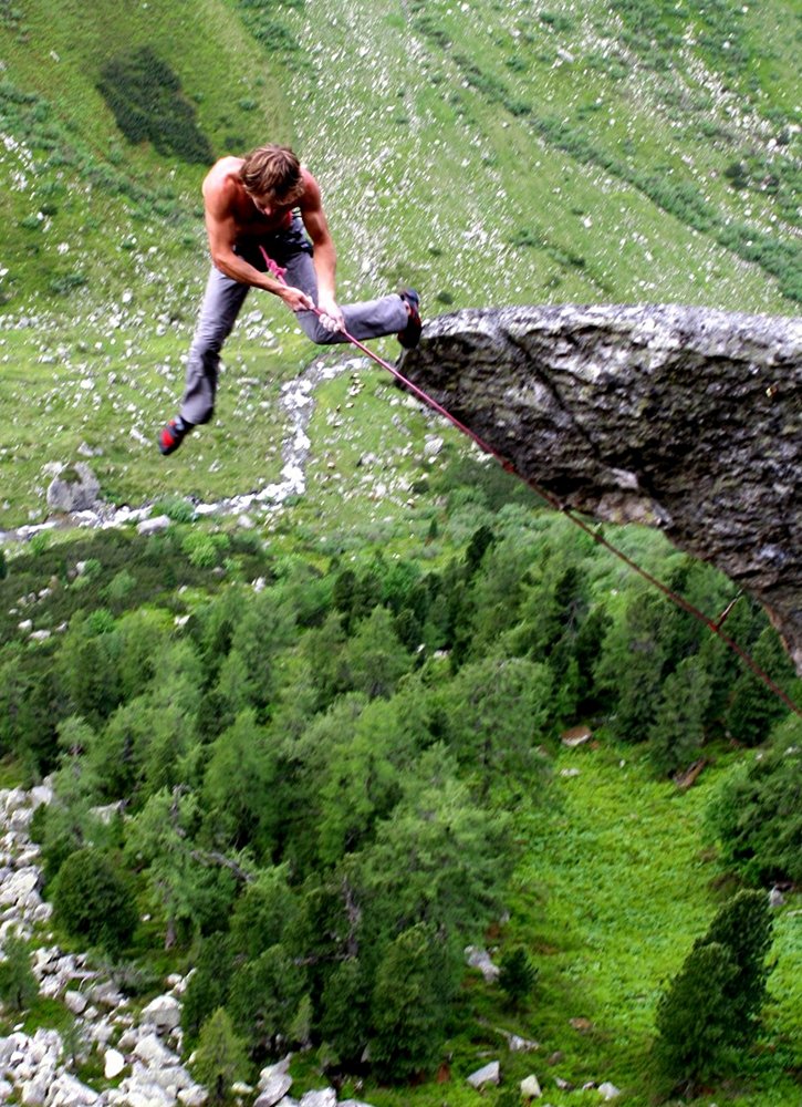 Mir taugts auch zu sehen, dass die jungen Kletterer immer fitter werden, Burschen wie ein Unterwurzacher, Lama oder Bendler verkörpern die "next Generation". Einstellung und Ansichten sind oft verschieden, aber Gott sei Dank hat jeder seinen eigenen Schädl, sonst tat´s eh fad werdn. Eines hat sich für mich in den 12 Kletterjahren nicht geändert, nämlich bewerten tue ich immer noch für die anderen und nicht für mich. Die Kletterurgesteine die in die gleiche Richtung dachten wie ich (Pöll Franz) werden immer weniger. Wir waren oft wochenlang unterwegs, redeten nie über Bewertungen, wichtiger waren Themen wie (die Schönheit einer Linie, wo gibt’s an guatn Wein, was sind die nichtgiftigen Kräuter rund um den Bus zum Suppe kochen, Frauentechnische Themen usw). Und trotzdem taugt mir der Sport noch brutal!