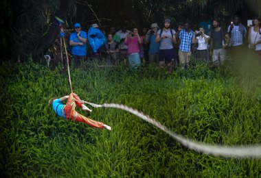 Als weitaus größere Herausforderung entpuppte sich jedoch die Planung. Es dauerte mehrere Monate die Behörden vor Ort von dem Projekt zu überzeugen und alle notwendigen Genehmigungen zu erhalten. Das Timing musste sich vor allem am Wasserstand des Sambesi orientieren. „Wenn der Wasserstand zu hoch ist, steigt die Gischt bis zu 300 Meter auf und man kann gar nichts machen“, erklärt Kleindl. „Da die Wasserstände jedes Jahr variieren, war es schwierig, den richtigen Zeitpunkt zu bestimmen, an dem es überhaupt möglich ist, hier eine Highline zu spannen. Auch die Inseln auf der Wasserfallseite sind nur wenige Wochen im Jahr per Boot erreichbar, so wussten wir bis zum Schluss nicht, wie wir unsere Line auf der anderen Seite befestigen können. Zum Glück haben wir dort einen stabilen Baum bei einer Distanz von 91 Metern gefunden, der uns ermöglichte, eine cleane Highline aufzubauen. Wir hätten zwar die Genehmigung gehabt, temporäre Bohrhaken zu setzen, aber in unserem Sport, wie in anderen Bergsportarten, möchte man gerne möglichst wenig Spuren hinterlassen, vor allem wenn man – wie bei diesem Projekt - das Vertrauen der Zimbabwe Parks und Wildlife Management Authority genießt.“