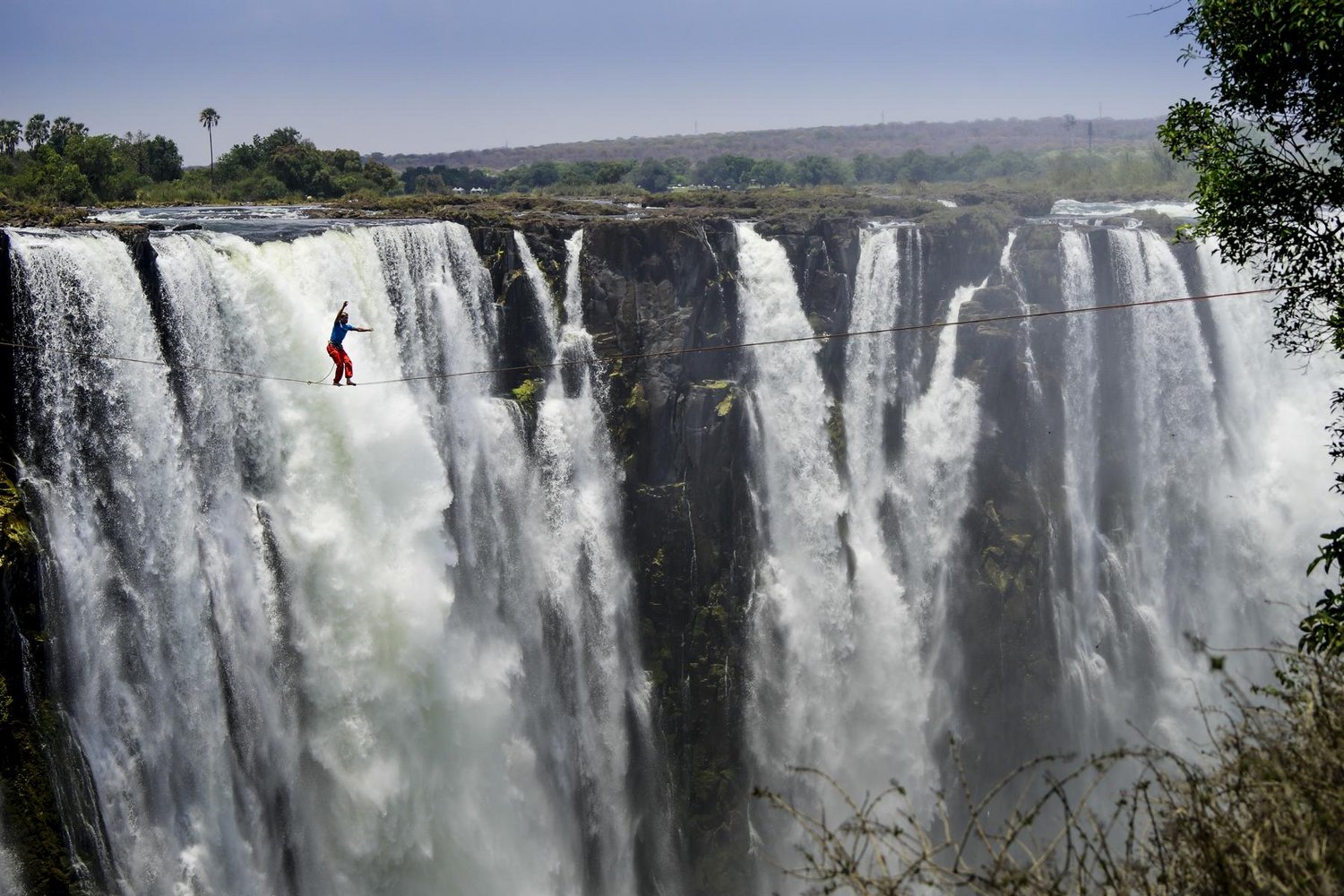 „Wir sind immer auf der Suche nach tollen Locations, an denen wir unsere Highlines spannen können“, sagt Reinhard Kleindl. „Lukas und ich haben uns in diesem Zusammenhang vor rund zwei Jahren eine Menge Wasserfälle angeschaut. Die Bilder der gewaltigen Victoriafälle haben uns auf Anhieb begeistert, doch wir waren der Meinung, dies sei eine Nummer zu groß für uns. Allerdings sind wir die Idee nicht mehr losgeworden.“