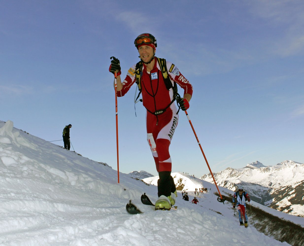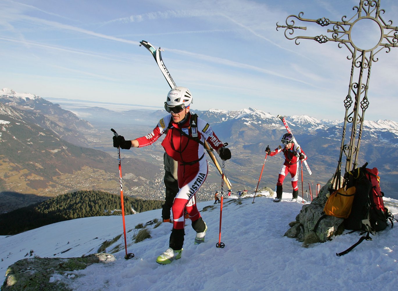 Schibergsteigen oder auch Tourengehen ist zwar in Österreich noch nicht als Wettkampf- Sportart in weiten Kreisen bekannt, international allerdings tut sich hier gewaltiges. Beim Weltcuprennen in der Schweiz gingen dem entsprechend 700 Top- Athleten an den Start. Auf einem Parcours mit 2.000 Höhenmetern waren jeweils 4 Anstiege und Abfahrten zu bewältigen, technisch aufgewertet wurde das Rennen durch 2 Tragepassagen über Felsgipfel.