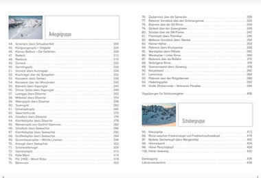 Die einzelnen Routen werden mittels klassischem Steckbrief (Exposition, Höhenmeter, empfohlener Zeitraum, Schwierigkeit, etc.), persönlicher Beschreibung, Karte und Detailinformation (Ausgangspunkt, Anfahrt, Aufstieg, Abfahrt und Material) skizziert. Gekrönt werden die Tourenbeschreibungen von den oben bereits erwähnten Fotos.