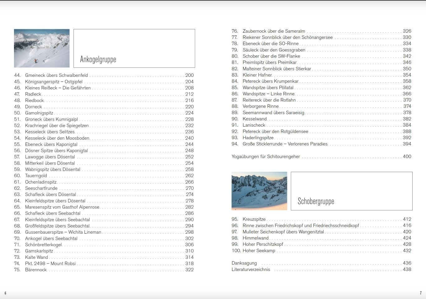Geografisch streng genommen müsste der Titel 100 Spezialskitouren südlich des Alpenhauptkamms heißen. Denn inhaltlich liegt der Schwerpunkt des über 400 Seiten starken Buchs auf der Kreuzeckgruppe und der Ankogelgruppe, die wir im gemeinsamen Führer „Skialpinismus in den Hohen Tauern Süd“ zwar behandelt, aber nicht vollständig abgebildet haben. Darüber hinaus komplettiert Robert mit sechs neuen Touren seine geliebte Schobergruppe. Dass er einer der profundesten Kenner der Südalpen ist, hat er bereits mit drei Tourenführern bewiesen (Skialpinismus in den Julischen Alpen Ost bzw. West und Skialpinismus in den Karnischen Alpen). Neunzehn neue Touren aus dem großartigen Gebiet Karawanken, Julische Alpen, Karnische Alpen und Gailtaler Alpen sind ebenfalls dazugekommen.