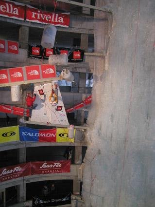 Letzten Freitag und Samstag gingen in Saas-Fee zum zweiten Mal die Eiskletterweltmeisterschaften über die Bühne. Neu waren in diesem Jahr ebenfalls die Eiskletter-Schweizermeisterschaften im Anlass integriert. Für die zweite Austragung der WM und die insgesamt 6. Auflage des Weltcups in Saas-Fee waren die Bedingungen im Ice Dom von Saas-Fee wiederum einmalig. Denn im Parkhaus von Saas-Fee finden weltweit die einzigen Indoor-Wettkämpfe im Eisklettern statt. Wetterunabhängig können hier die Zuschauer von der spiralförmigen Auffahrtsrampe den Athleten noch in 30 Meter Höhe genau auf die Finger schauen.