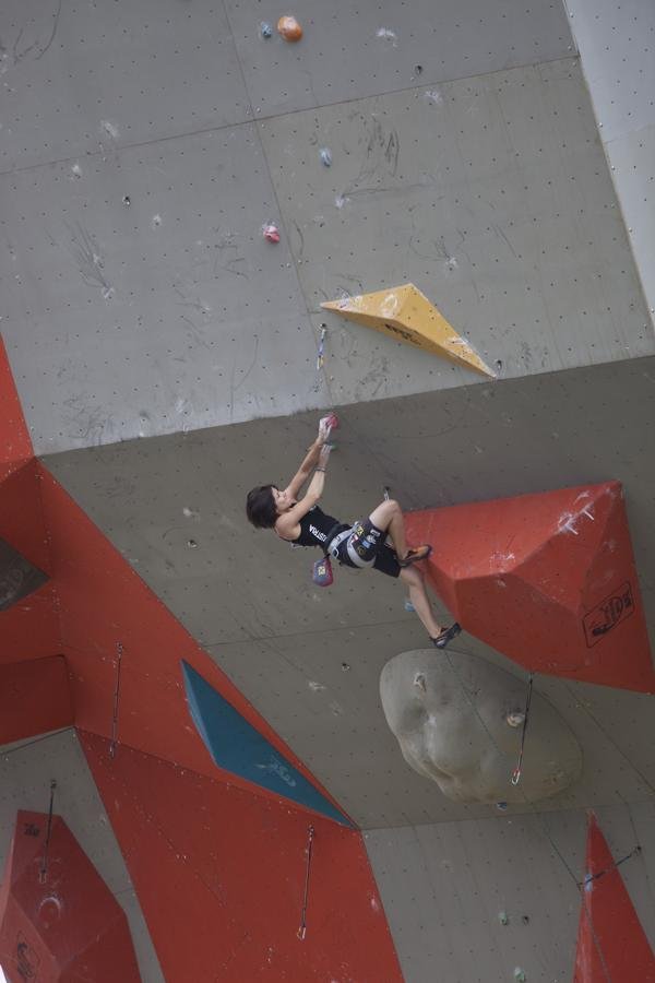Allen voran klettert das Ausnahmetalent Johanna Ernst bei ihrem WM-Debüt der Konkurrenz auf und davon. Nachdem sie sich in der Halbfinal-Route am weitesten nach oben gekämpft hatte, musste sie sie Finaltour ebenso wie die Koreanerin Kim Jain bis zum Ende durchsteigen. Gesagt- getan! Mit ihren 16 Jahren kann die Schülerin ihrer unglaublichen Erfolgsgeschichte mit dem Weltmeistertitel noch ein weiteres Kapitel hinzufügen.