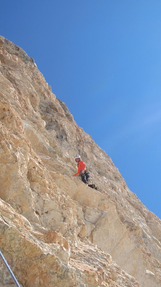 Die milden Temperaturen ab Mitte Februar beflügeln diesen Wunsch und mit Klaus Gruber steht der Seilpartner schnell fest. Gemeinsam mit dem 21-jährigen Ahrntaler hat Simon im Oktober 2010 die Route Fairplay (Schwierigkeitsgrad 10-) in der Vallon-Sella-Gruppe rotpunkt eröffnet.