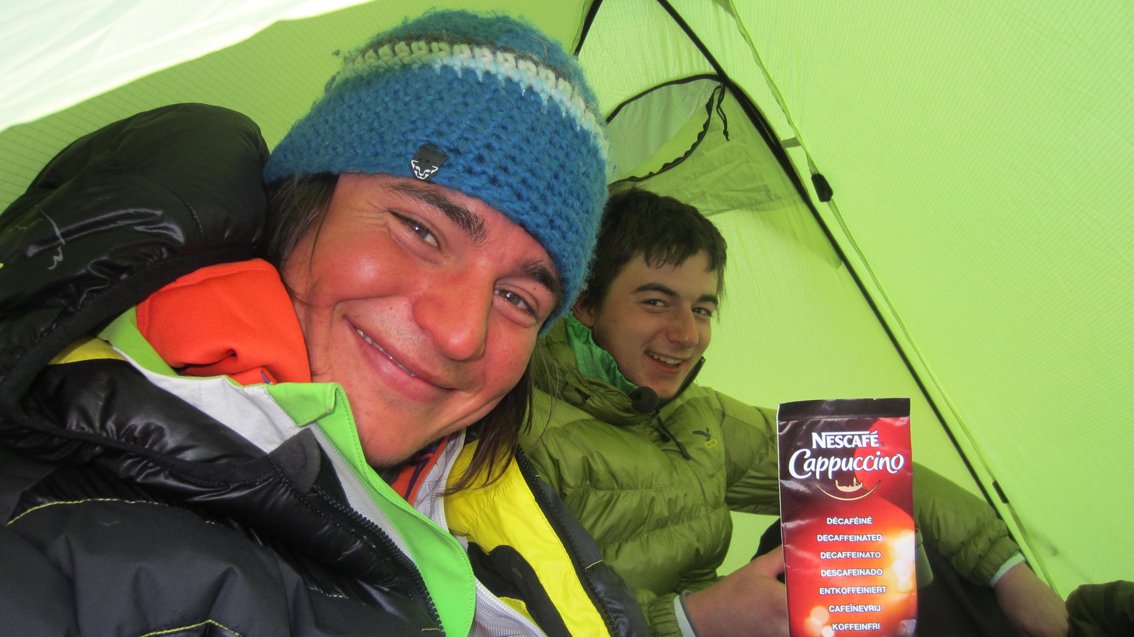 Optimale Bedingungen erleichtern Simon und Klaus das Projekt Zauberlehrling im Winter. Und so geht es Seillänge um Seillänge nach oben, bis sie am 3. März, nach zweieinhalb Tagen harter Kletterei den Gipfel der Cima Scotoni erreichen - müde aber glücklich.