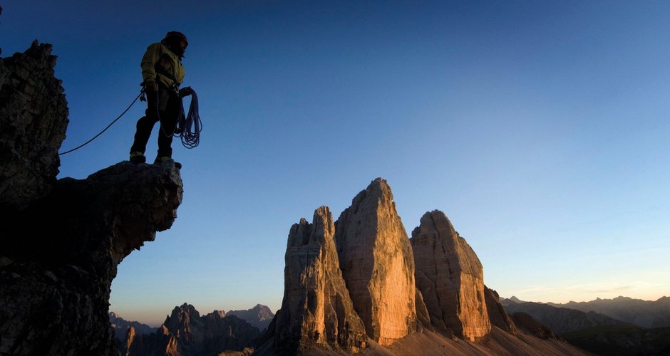Christoph Hainz hat zwar Berge auf der ganzen Welt bestiegen, eine besondere Faszination übt aber nach wie vor der weiße Fels der Dolomiten – und speziell jener „seiner“ Drei Zinnen – auf ihn aus. Christoph Hainz verbindet eine besondere Beziehung zum Wahrzeichen der Dolomiten. „Mich faszinieren die Zinnen nach wie vor und ich erlebe sie jedes Mal anders“, sagt der Pusterer im „Zinnenmann“, einem Filmportrait über den 53-Jährigen, das auch im Rahmen des Vortrags gezeigt wird. Fünf populäre Routen hat er an ihren Wänden erschlossen: „Das Phantom der Zinne“ (IX+), „Alpenliebe“ (IX), „Ötzi trifft Yeti“ (VIII+), „Prima Ballerina“(IX-) und – last but not least – „ Pressknödel“ (IX).