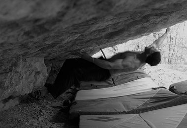 Toni Lamprechts jüngstes Boulderkreation (8C) in Kochel