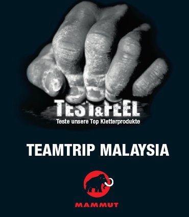Klettern in Thailand boomt, Malaysia ist diesbezüglich noch ein unbeschriebenes Blatt. Ein klarer Fall für das Spezial-Kletterteam von Mammut. Im Namen des Sultans von Perlis machten sich im Februar 07 sieben der besten Nachwuchs-Kletterer Europas auf, das Sultanat im Nordwesten Malaysias mit Hochqualitäts-Routen im oberen Schwierigkeitsgrad zu schmücken. Bolting-Team David Lama und Reini Scherer flogen bereits zwei Wochen vor der Klettercrew ins malayische Inselreich und richteten 94 Routen ein. Die beiden zeigten sich voller Tatendrang: „Wir denken, dass wir pro Tag ungefähr drei neue Routen bohren!“ Die Vorlage ist klar: „Mindestens eine 8c+ muss darunter sein!“ Dass diese dann auch gleich von der Klettercrew erstbegangen wurde, versteht sich von selbst.