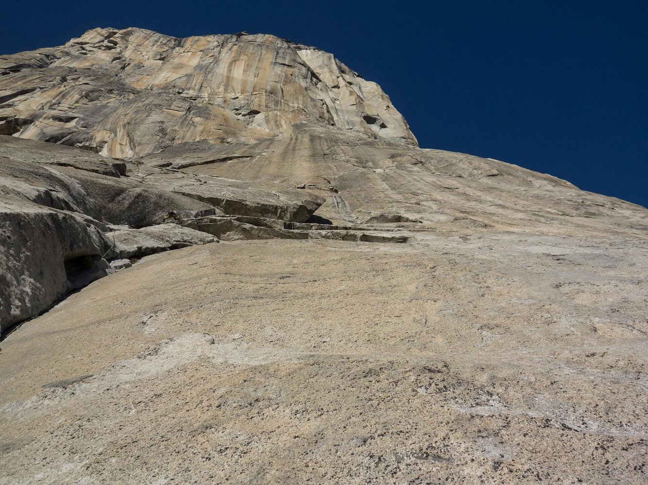 Obwohl wir sehr gut vorankommen holt uns die Dunkelheit auf Höhe des El Cap Spires ein, ein perfekter Biwakplatz. Leider sind hier bereits zwei Kanadier, und Platz für vier Personen ist hier nicht wirklich. Wir klettern weiter. Unser Vorteil, dadurch sind wir morgen sicherlich die ersten am Boulderproblem, wo kühle Temperaturen und Schatten auch im November von Vorteil sind.