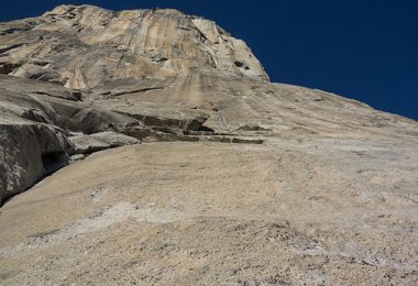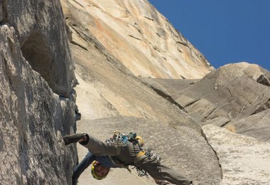 Ganz egal wie meine Kletterleistung heute ausfällt eines ist klar, wir müssen heute noch aus der Wand aussteigen. Zudem ist auch der circa dreistündige Abstieg noch heute zu erledigen. Mike muss morgen wieder arbeiten in Santa Barbara. Für die Fahrt dahin sind circa sechs Stunden zu kalkulieren. Zeitdruck? Ich weiß das alles, versuche es aber so gut wie es geht auszublenden. Mike ist entspannt und sehr zuversichtlich, dass es gelingen wird.