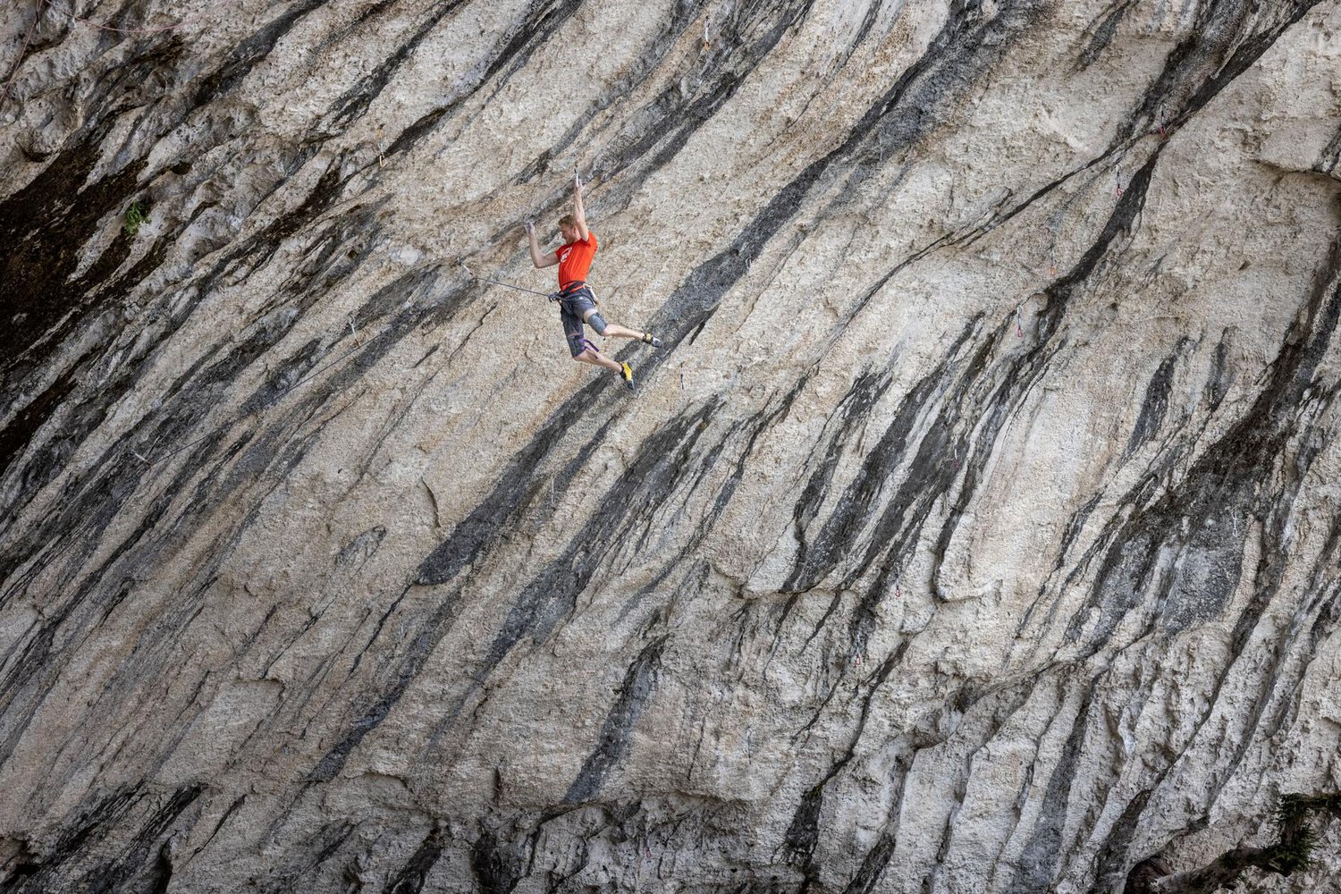 Die Route macht wirklich Spaß und ich habe mich ziemlich gut gefühlt. Ich konnte alle Züge innerhalb von zwei Tagen machen. Auch dank Seb, der mir ein Video geschickt hat, und ich mir so einiges von ihm abschauen konnte, was mir sehr geholfen hat. Was mich am meisten an der Route reizt, ist, dass es nicht einen alles entscheidenden Zug oder Passage gibt, sondern dass die Schwierigkeit von DNA darin liegt, all diese schwierigen Züge zusammenzufügen und in einem Stück zu durchzuklettern. Und offensichtlich ist es eine sehr attraktive Linie an einer wunderschönen Wand, das neue Video gibt wirklich nur einen ersten Vorgeschmack der einzigartigen Szenerie.