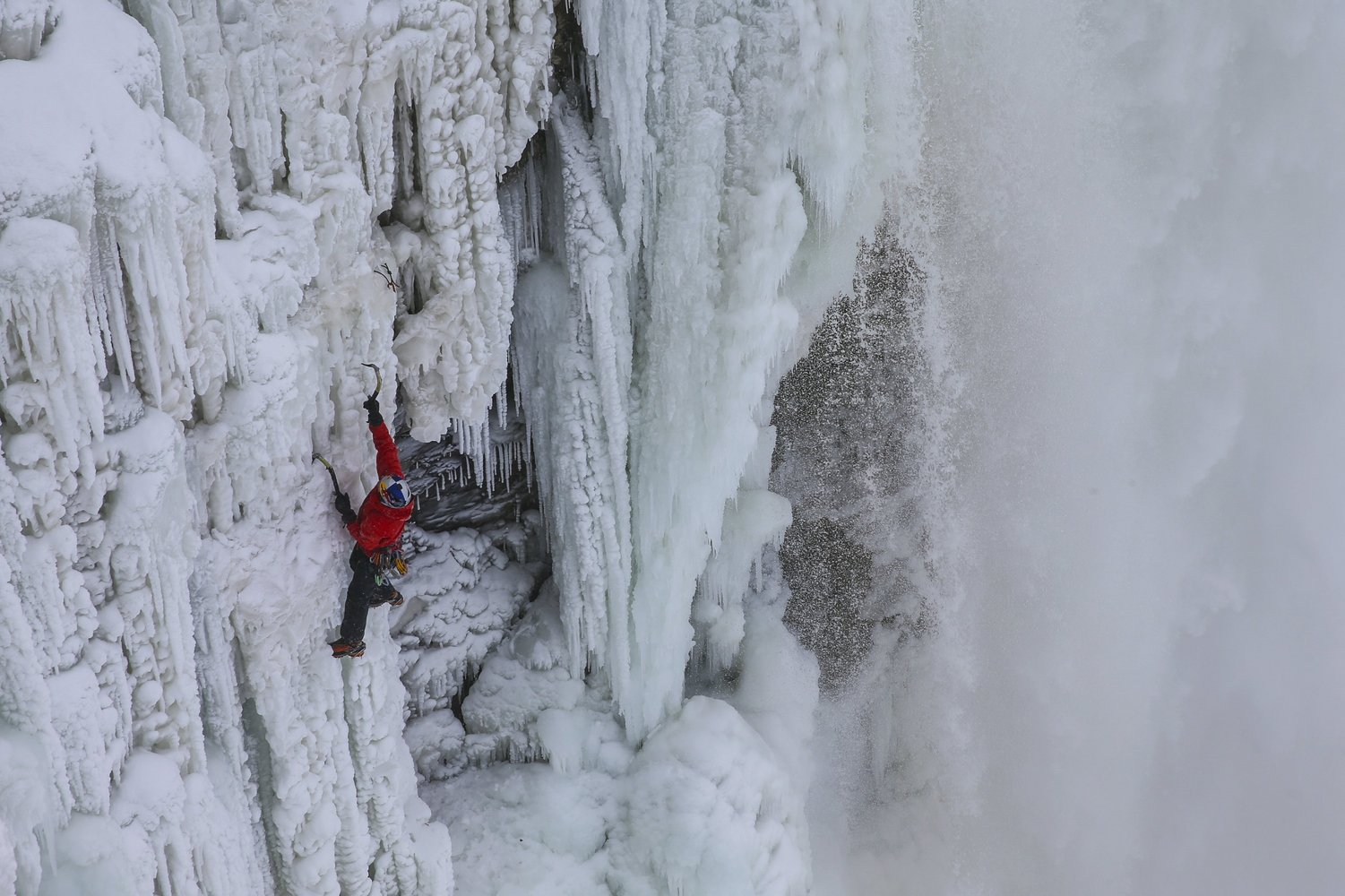 In den USA scheint es derzeit richtig kalt zu sein. Ein Grund für Will Gadd, gemeinsam mit Red Bull am Rand der Niagara Fälle etwas Eis zu klettern. Ob wie Red Bull meint "Will Gadd takes ice climbing to the next level by scaling the frozen sections of the world’s largest flowing waterfall, Niagara Falls" ein neuer Meilenstein im Eisklettern gemacht wurde, darf bezweifelt werden.