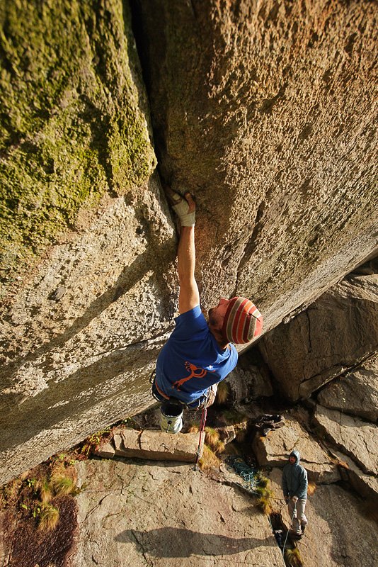 „Greenspit“ wurde 2005vom starken Schweizer Rissspezialist Didier Berthod erstbegangen, der alles Sicherungen aus der Kletterstellung legte. Nico brauchte brauchte sieben Versuche verteilt auf zwei Tage, um das 12 Meter horizontal auslandende Rissdach zu durchsteigen und meint danach: „Diese Tour ist wirklich fantastisch und einzigartig in Europa. Ich kann es kaum glauben, dass ich die hier die erste Wiederholung schaffen konnte.“ Im entscheidenden Versuch kurz vor Dunkelheit fiel Nico bei der Crux der Friend aus der Hand. Er zögerte kurz und dachte, dass es vorbei sei, doch dann mobilisierte er seine ganzen Kräfte und legte die allerletzte Sicherung und zog die letzten Meter bis zum Ausstieg durch.