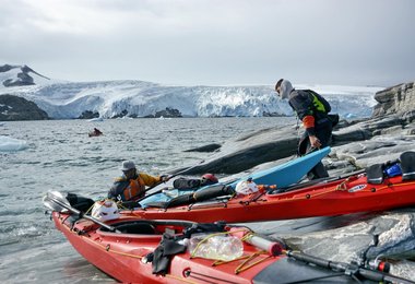 Am nächsten Morgen in der Dämmerung versuchte ein Eisbär mein Kayak auszuräumen. Zum Glück war er scheu und machte sich wegen meines Gebrülls davon. Am Nachmittag traf endlich ein Boot ein und die Anspannung von 35 Tagen Wildnis legte sich von einem Moment auf den anderen. Unsere Odyssee war zu Ende.