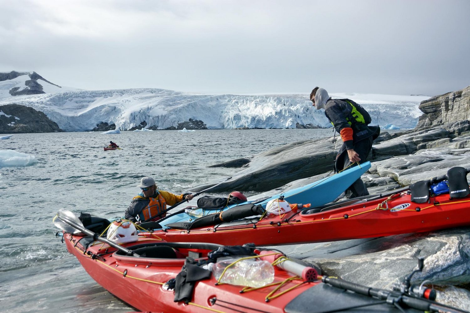 Endlich waren wir in der Wildnis angekommen! Lange Tage auf dem Meer folgten. Langsam, aber stetig paddelten wir in einer wilden Landschaft nach Süden. Riesige Gletscher und karge Berge säumen die Küste. Gewaltige Eisberge reihten sich dicht an dicht.