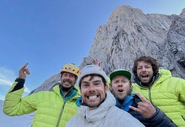Im letzten Tageslicht seilten wir ab und erreichten wieder den Biwakplatz. In der Nacht hatten wir die beste Gipfelfeier, die man sich vorstellen kann: Nordlichter tanzten über uns hinweg und verzauberten uns den Moment.