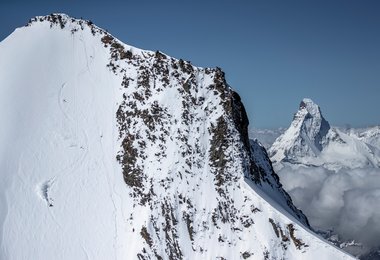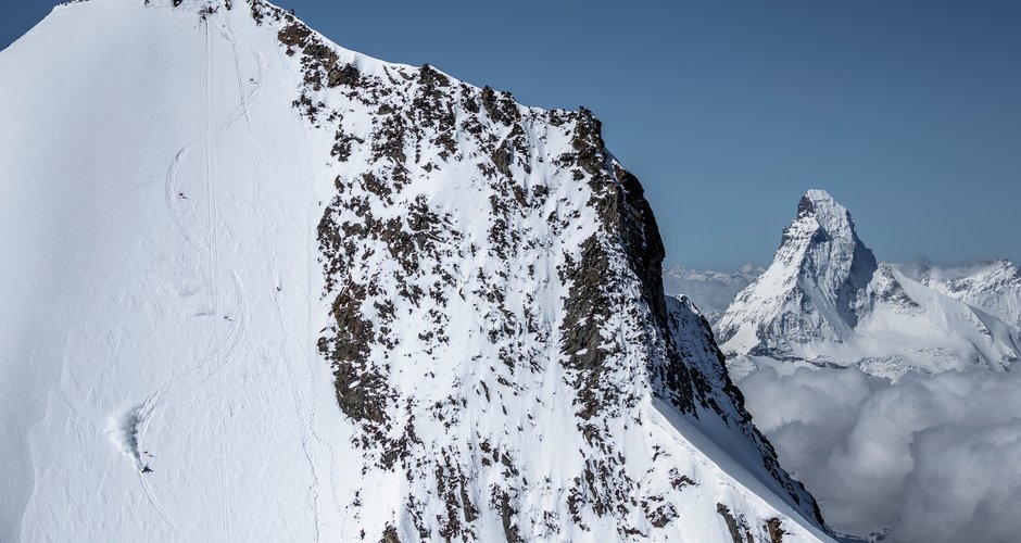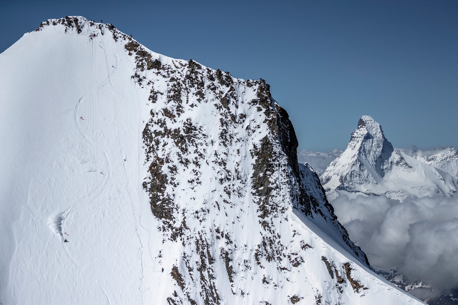 Im Wallis trafen sich beide zum ultimativen Backcountry-Riesenslalom für das « Race The Face », ein Rennen über die 500 Meter (rd. 300 Hm) hohe und bis zu 55° steile Nordwand des 4219 Meter hohen Hohberghorns. Zum Vergleich: Die Mausefalle, die steilste Stelle der berühmten Streif in Kitzbühel, hat gerade mal 40° und ist vielleicht 40 Hm hoch.
