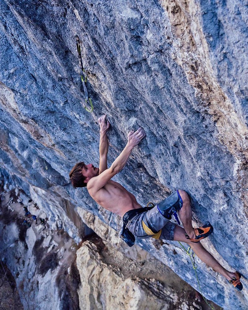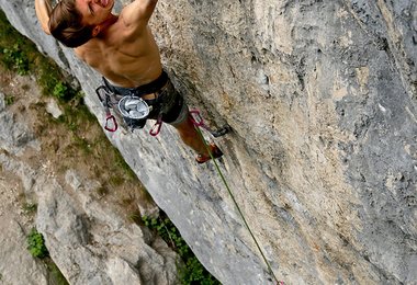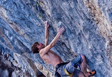 Roland Hemetzberger in Qui 9a+ an der Geisterschmiedwand; Foto: Fabian Hagenauer