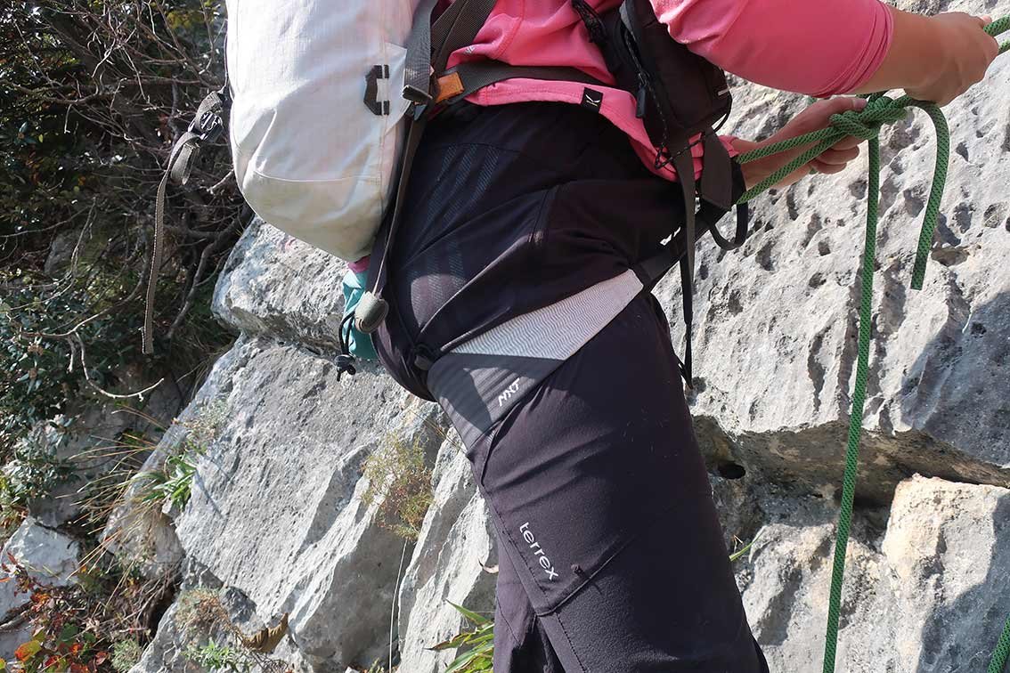 - Perfekte Zentrierung der Sicherungsschlaufe, ob mit T-Shirt oder schwerer Daunenjacke, dank der beiden Schnallen am Hüftgurt