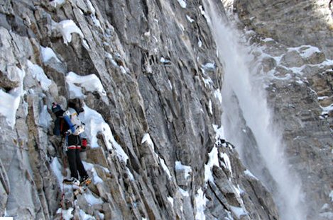 Zuerst Zentralcouloir durch die 2050 m hohe Westwand des Mount Grosvenor (6376 m) im Gongga Shan Massiv mit Schwierigkeiten bis WI 4 +.