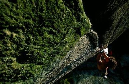 Greenspit wurde 1980 eingebohrt und ging nur bis zur halben Wandhöhe. Didier entfernte die Bolts und konnte am 14. Sept. 2003 die 12 horizontalen Meter von “Greenspit“ frei klettern, wobei er vorher die Friends anbrachte.