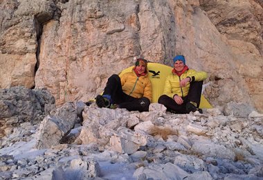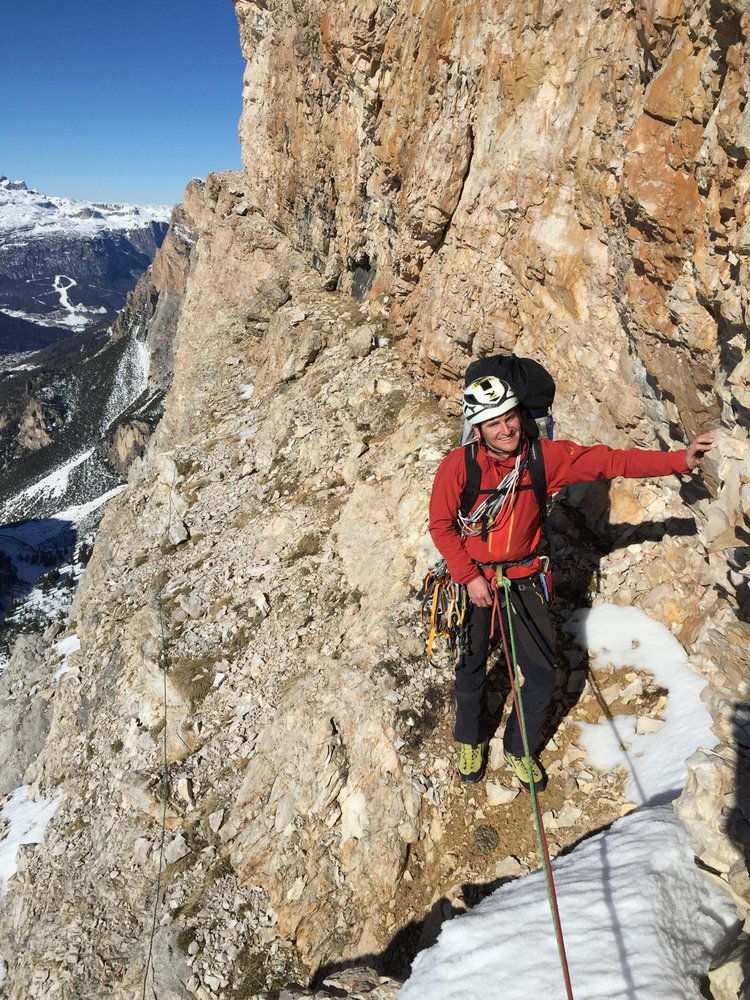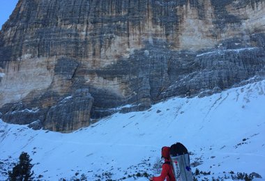 Bereits zehn Tage vor der Begehung am 17. und 18. Februar machte ich mich auf den Weg nach St. Kassian in Alta Badia um mir ein Bild von der Westwand der Cima Scotoni zu machen. Da aber immer noch viel Schnee in der Wand lag, musste mein Vorhaben, die Route "Waffenlos" zu klettern, vorerst aufgeschoben werden. Ich fasste also die Faschingswoche für die Begehung ins Auge und der Termin mit Gerry, meinem Expeditionspartner im Jänner 2014 in Patagonien, war sogleich vereinbart.
