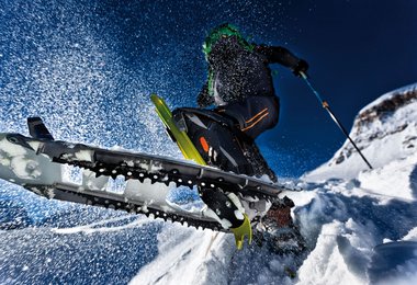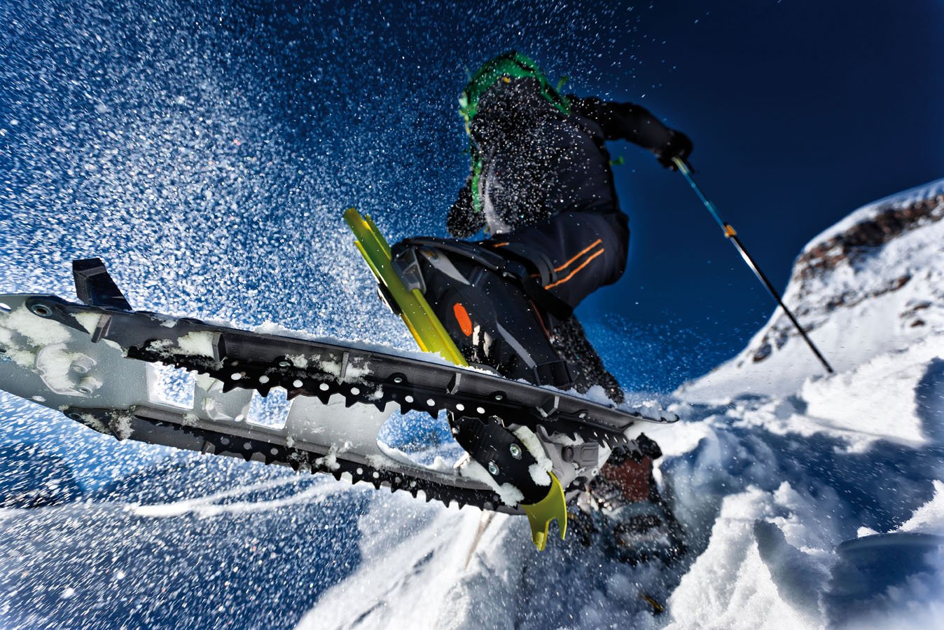 Mit einer einmaligen Kombination aus Funktion und Komfort ist der „999“ auch in vereisten Traversen, verharrschten Passagen oder einfach steilen, tiefverschneite Hängen eine zuverlässige Aufstiegshilfe. Dabei fällt er mit 999 Gramm pro Schuh nicht ins Gewicht und ermöglicht langes, ausdauerndes Gehen, bei Bedarf auch über mehrere Tage.