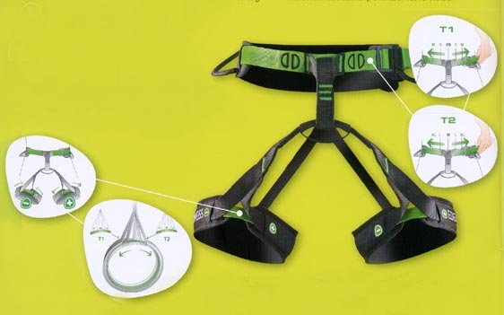 Sie sehen aus wie Gurte mit fixen Größen, tatsächlich handelt es sich bei AUTO-MATIC Gurten nicht nur um verstellbare, sondern um automatisch verstellbare Gurte. Die Einstellung an der Hüfte erfolgt durch ein Gurtband und eine verschiebbare Polsterung. Dies ermöglicht eine exakt mittige Ausrichtung des Anseilpunktes und der hinteren Beinschlaufenbefestigung. Die Einstellung der Beinschlaufen erfolgt (mittels eines elastischen Bandes mit einem großen Verstellbereich) selbstständig, je nach Beinumfang oder Hosenstärke (Überhose).