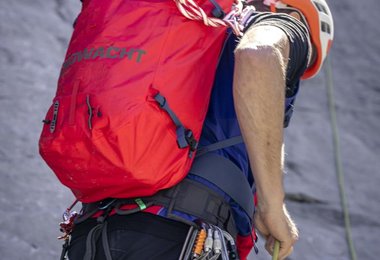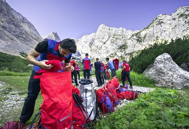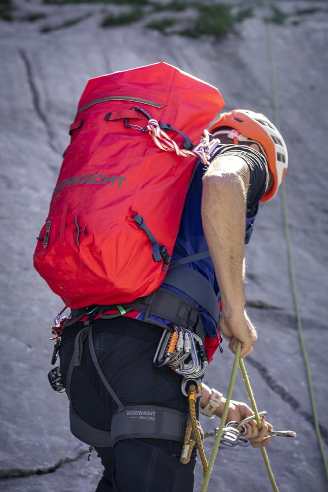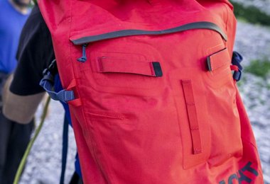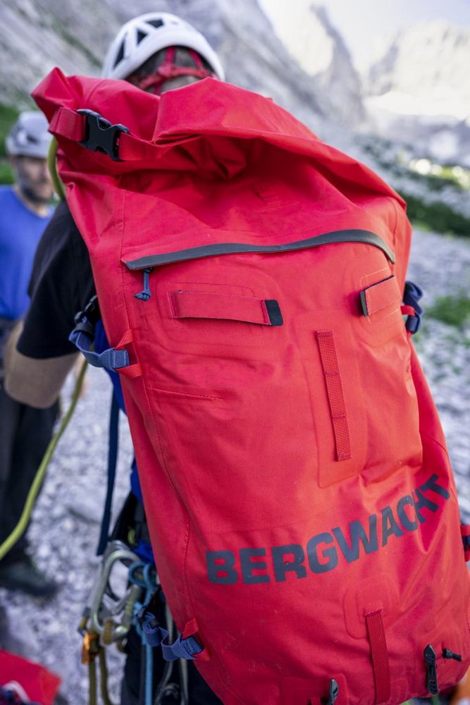 Der deuter Hochtourenrucksack Durascent hat mit seinen Funktionen, der Leichtigkeit und dem robusten, wasserdichten Material überzeugt. Für die Anforderungen bei Rettungseinsätzen, wurden Anpassungen von deuter in enger Zusammenarbeit mit der Bergwacht Bayern vorgenommen, um den hohen Materialbelastungen im Fels oder bei der Helikopterrettung gerecht zu werden. Zusätzlich galt es den wasserdichten Hochtourenrucksack von deuter für den Rettungseinsatz zusätzlich zu optimieren: Die Griffschlaufe wurde verstärkt, um den Rucksack auch bei voller Beladung sicher am Hubschrauber oder am Rettungsseil in der Wand einhängen zu können. Wo möglich wurden bruchsichere Schnallen verwendet, die Packsacktiefe für einen besseren Schwerpunkt reduziert und Befestigungsmöglichkeiten im Inneren des Rucksacks für Sonde und Schaufel geschaffen. Auch eine einfach herauszunehmende Sitzmatte für die Erstversorgung der Patienten vor Ort wurde bei diesem Sondermodell umgesetzt. Dank des reflektierenden Logos der Bergwacht und der roten Farbe, sind die Rucksäcke auf den ersten Blick zu erkennen, was zusätzlich für mehr Sicherheit sorgt.