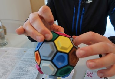 Wenn man Boulderball hört, denkt man fast unweigerlich an einen Boulderwürfel, an dem man Bouldern kann. Ganz abwegig ist dieser Gedanke nicht, denn der Boulderball ähnelt dem bekannten Zauberwürfel (bekanntes Drehspiel, bei dem man alle Farben komplett auf die Würfelseiten bekommen muss), ist aber rund und man kann die Farben nicht verdrehen. Die Herangehensweise beim Boulderball ist eine andere - man bouldert quasi mit den Fingern um den Ball herum.