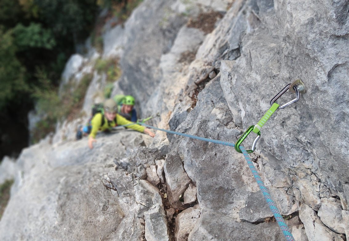 Vor ca. einem halben Jahr haben wir die leichten Dyon-Expressschlingen zu unserer Ausrüstung hinzugefügt und waren wirklich begeistert. Seit einiger Zeit klettert jetzt einer von uns Zwillingen mit dem „normalen“ Modell, den sogenannten Photon-Expressschlingen. Der Aufbau ist ähnlich wie bei den Dyon-Schlingen - ein leichter, dünner Karabiner, welcher aber mit einem normalen Schnapper ohne Nase geschlossen wird. Ein flaches Profil und ein Schnappverschluss, der wirklich leichtgängig ist – der Photon-Karabiner hat eine angenehme Form und liegt deshalb sehr gut in der Hand.