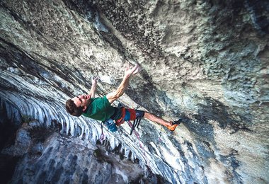Babsi Zangerl mit dem neuen Black Diamond Vapor Kletterhelm in der "Eternal Flame"; Foto: Jonathan Faeth