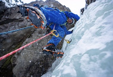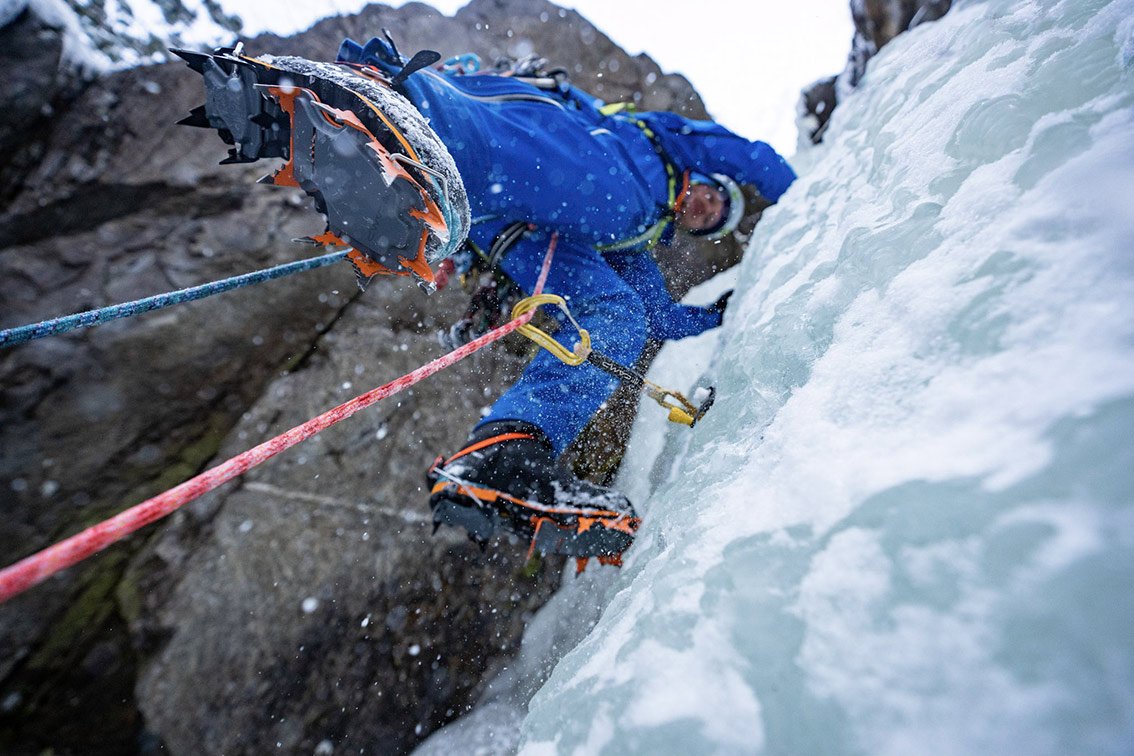 Zu Beginn des 20. Jahrhunderts tauchten Steigeisen auf, erst Zehnzacker und dann Zwölfzacker mit zwei Vorderzacken, aber die eigentliche Revolution kam erst viel später und eröffnete neue Horizonte. Die Rede ist natürlich von der Piolet-Traktion, die es ermöglichte, bisher unwahrscheinliche Kunststücke zu konzipieren und auszuführen. Wir denken da an die berühmte Supercouloir des Mont Blanc du Tacul, die 1975 von Patrick Gabarrou und Jean-Marc Boivin bezwungen wurde. Und natürlich konnten so die klassischen Routen in viel weniger Zeit bewältigt werden. Das Geheimnis dieser Veränderung? Das Aufkommen neuer Werkzeuge wie Eispickel und Steigeisen, einschließlich unseres Hummingbirds mit modularem Kopf und unserer Footfang mit vertikaler Struktur. Alpinisten entdecken ein plötzliches Interesse an tiefer gelegenen Zielen, wo sich Wasserläufe im Winter in Eissäulen und Eiswände zum Klettern verwandeln. Hier gibt es echtes, senkrechtes Eis, Lichtjahre von den um 50 oder maximal 60 Grad geneigten Schneehängen entfernt. In den letzten Jahren wurde die Ausrüstung immer weiter verbessert, Eisfälle, an denen einst nur eine kleine Elite kletterte, heißen heute dank echter Sensationen wie dem X-Dream-Eispickel oder dem Blade Runner-Steigeisen immer mehr Eiskletterer willkommen. Mit Begeisterung warten sie auf den Gefrierpunkt, den richtigen Moment, um sich an ihre kurzlebigen Träume zu wagen. Egal wo, ob Alpen, Norwegen oder Kanada, stets für unvergessliche Emotionen in einer surrealen Umgebung bereit.