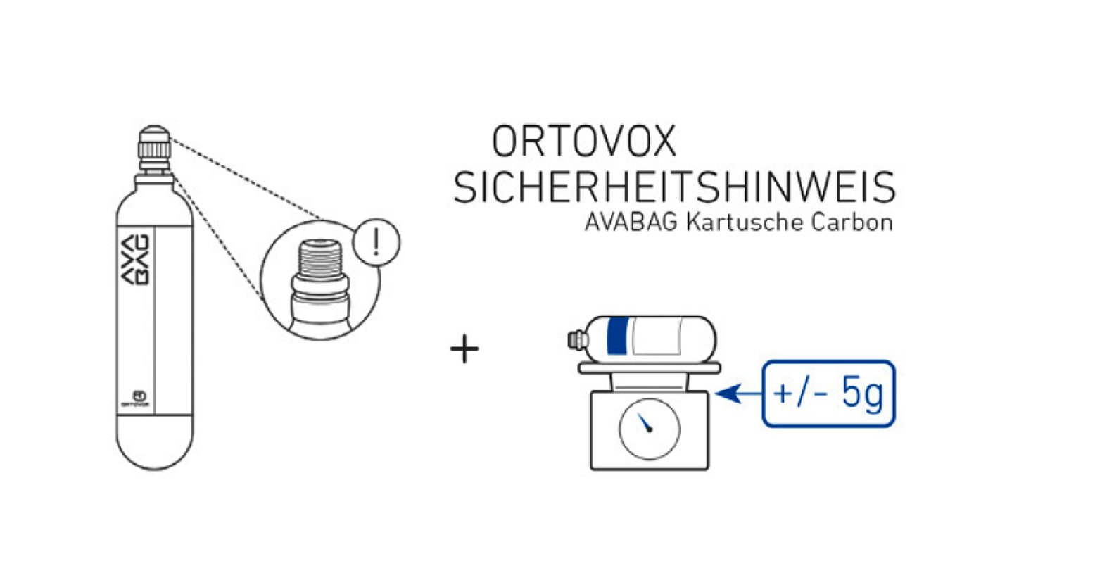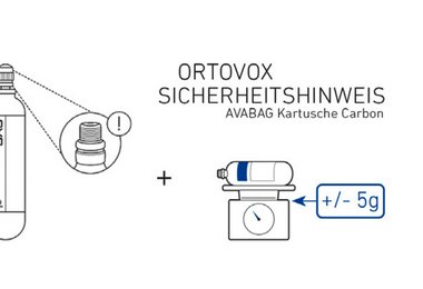 Um jegliches Risiko auszuschließen, weist Ortovox zum Start in die Tourensaison noch einmal ausdrücklich darauf hin, dass das Gewicht der Avabag Kartusche Carbon vor jedem Einsatz eines Avabag-Airbag Rucksacks mittels Wiegeprüfung unbedingt zu überprüfen ist.