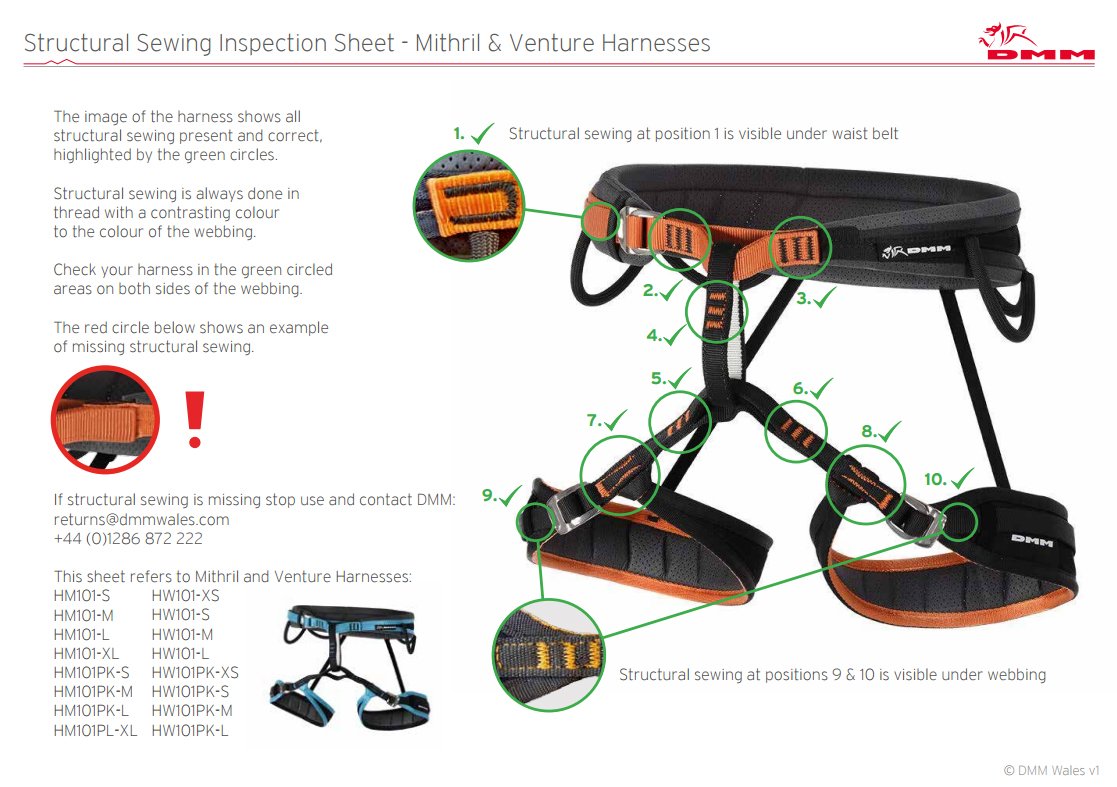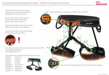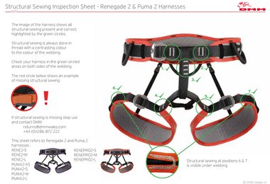 Alle lagernden DMM-Klettergurte werden auf Verarbeitungsmängel hin untersucht, eine vollständige Untersuchung und Überprüfung der Qualitätskontrolle und der Fertigungssysteme wird durchgeführt und Prozessverbesserungen werden umgesetzt!