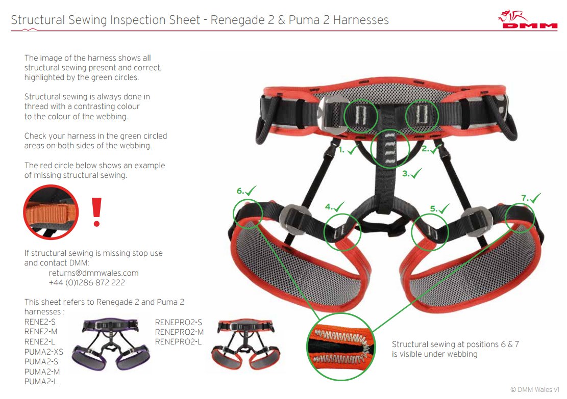Bei dieser fehlenden strukturellen Naht handelt es sich laut Unternehmensangaben um den ersten Produktionsfehler seit der Herstellung der ersten DMM-Gurte. Da die Produktions- und Qualitätssicherungskontrollen für den DMM-Brenin die selben sind wie für alle anderen Gurte, empfiehlt der Hersteller alle Gurtmodelle auf etwaige Fehler hin zu untersuchen.