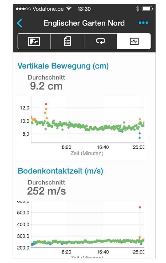 Neben dieser präzisen Leistungsanalyse bietet der neue HRM-Run Brustgurt die Möglichkeit zur Laufstilanalyse. Sie erfasst hierbei die Schrittfrequenz, die Bodenkontaktzeit sowie die Vertikalbewegung des Körpers (in Zentimeter). Ein schneller und ökonomischer Laufstil setzt sich aus einer gleichmäßigen und hohen Schrittfrequenz, einer kurzen Bodenkontaktzeit sowie einer geringen Hoch-Tief-Bewegung des Körpers zusammen. Das Feedback der fēnix 2 gibt nicht nur Hinweise wie man sein eigenes Leistungsniveau verbessern kann, sondern sorgt durch den Weg zu einem effektiveren Laufstil auch für die Entlastung von Muskeln, Sehnen und Knochen, was zur Gesundheit und Verletzungsfreiheit beiträgt.