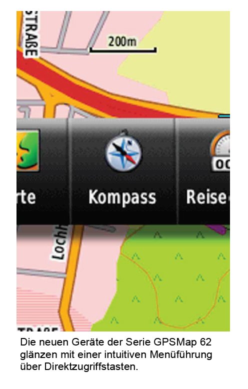 Die neuen Geräte der Serie GPSMap 62 glänzen mit einer intuitiven Menüführung über Direktzugriffstasten.