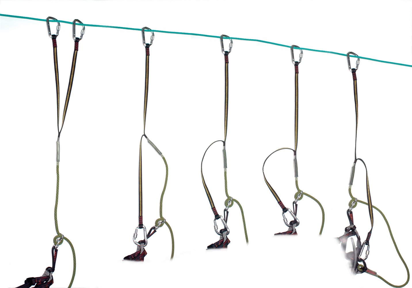 Wird bei einem Klettersteigset vorübergehend ein Karabiner in die Anseilschlaufe des Hüftgurtes eingehängt, kann die Klettersteigbremse unwirksam werden und die volle Belastung auf jene Naht wirken, mit der die beiden Sicherungsstänge vernäht sind. Diese Art der Belastung ist in der Normprüfung nicht vorgesehen und kann zum Reißen führen. Je nach Bauart des Sets kann dies zum Absturz führen.