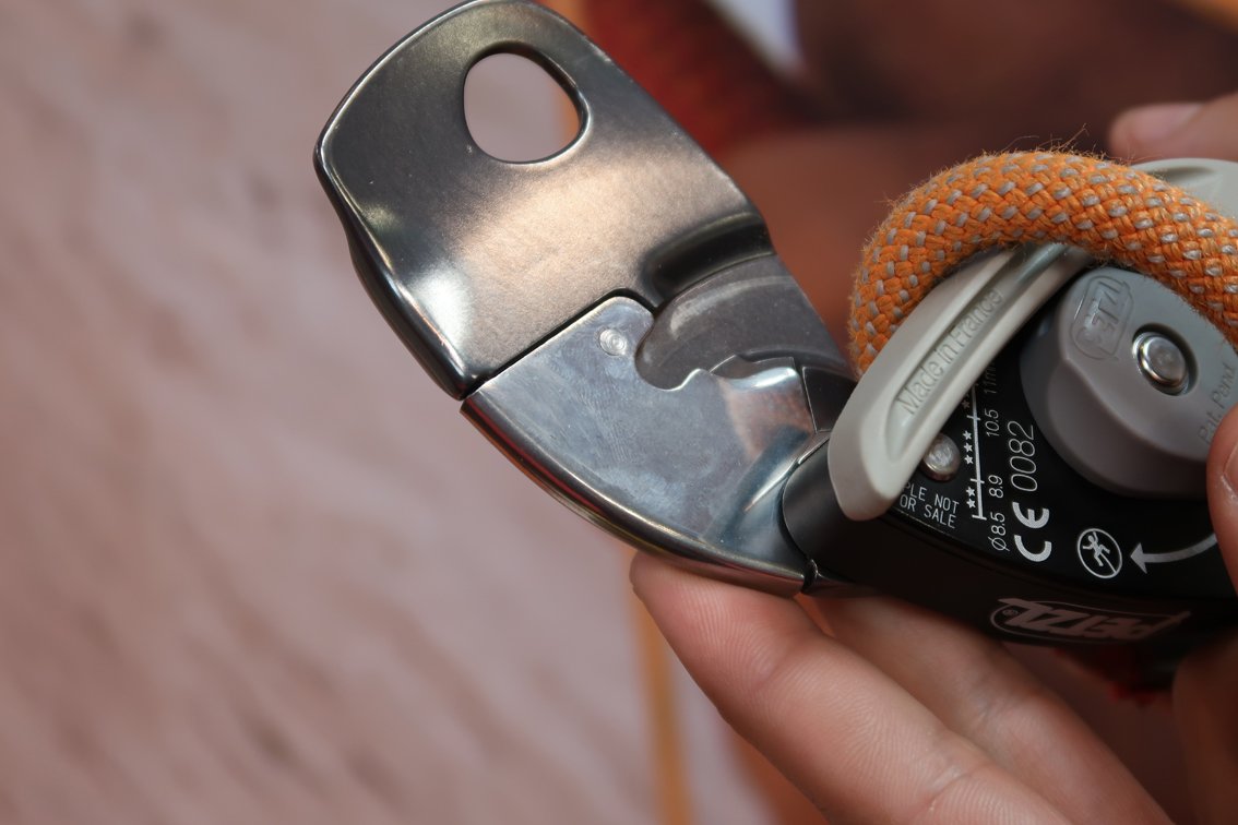 Weiters verfügt das neue Gerät an der Kante, über die das Seil läuft, über eine Edelstahlverstärkung, das schützt das Grigri + noch besser vor Seilabrieb. Das Grigri + ist mit dem Umstellmechanismus hervorragend für Klettereinsteiger geeignet, eben wegen dem Anti-Panik-Hebel und dem speziellen Modus zum optimalen Sichern im Toprope: Reduzierung der Sturzhöhe und leichteres Einziehen von Schlappseil. Der Gewichtsunterschied zum Grigri 2 (170 g) beträgt 30 g.